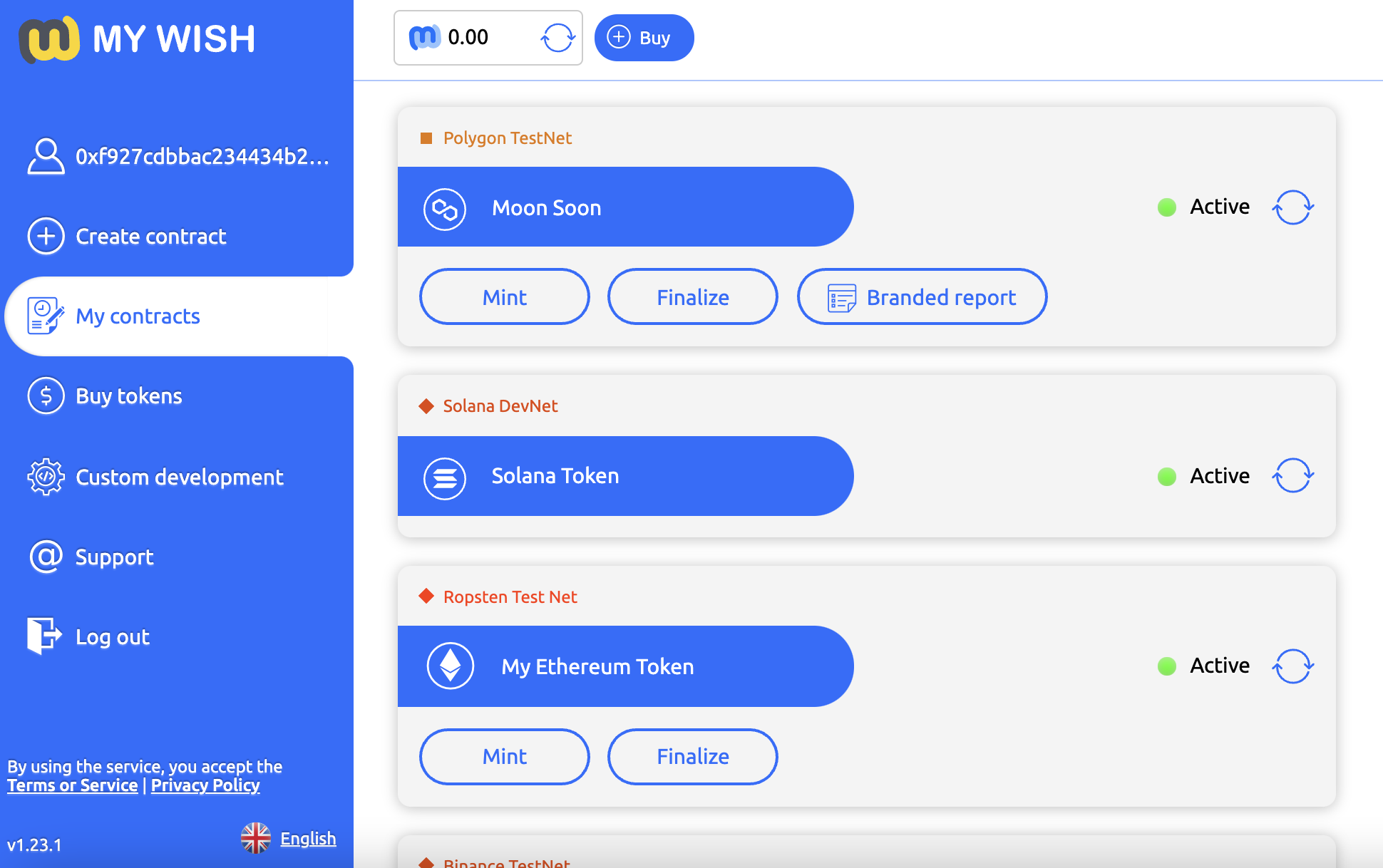 Start creating your smart contract now at: https://contracts.mywish.io/